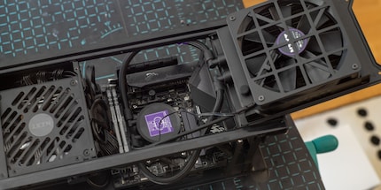 Die AIO ist mit allen geläufigen Sockeln – AM4 oder LGA 115x – kompatibel. Dank der Grösse von 140 Millimetern sollten sich auch aktuelle CPU-Top-Modelle von Intel oder AMD darin verbauen lassen. Zum Verbauen von Mainboard und Co. klappst du einfach die Radiatorhalterung der AIO hoch, montierst deine Komponenten und steckst die Kabel ein. Danach brauchst du die Radiatorhalterung lediglich wieder anzubringen. Alles ist genau bemessen, die Schläuche der AIO passen perfekt. Bei den Kabeln ist es stellenweise etwas eng, beispielsweise wenn du die Kabel der Frontanschlüsse montierst. Das ist jedoch dem kleinen Formfaktor geschuldet. Für mich ein persönliches Highlight: Der Stecker für die Frontanschlüsse, also Power-Knopf, LED und Co., ist tatsächlich nur ein Stecker und nicht mehrere, wie das sonst der Fall ist. Dein RAM darf maximal 45 Millimeter hoch sein, sonst kriegst du die Radiatorhalterung nicht mehr zu.