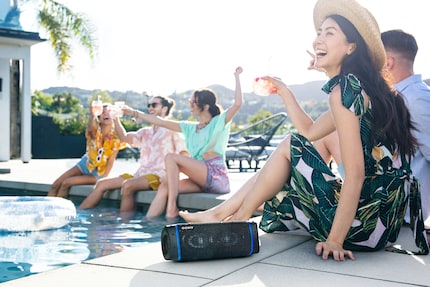 Dank Schutzart IP67 und des süss- und salzwasserresistenten Designs kannst du die neue Sony Lautsprecher ganz einfach überall hin mitnehmen. Auch das Abwaschen ist kein Problem.