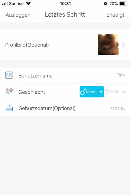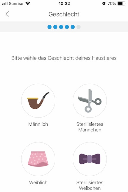 In der App erstellst du ein Profil und scrollst dich durch den Fragenkatalog.Via Mikrofon kann ich jederzeit mit Finn sprechen. Seine Reaktion? Lautes Gebelle, weil er meine Stimme erkennt, mich aber nirgends sehen kann. Das hat zur Folge, dass er statt zur Tierkamera zur Haustür rennt, weil er mich dort erwartet. Die Enttäuschung ist umso grösser, als er merkt, dass ich nicht da bin. Und sein Gejaule wird immer lauter. Da helfen selbst beruhigenden Worte nicht.