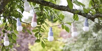 Selbst simple Lichterketten schaffen eine angenehme Stimmung, weil sie im Gegensatz zu klassischen Deckenleuchten das Licht verteilen. Sie leuchten meistens nicht mit mehr als 5 Watt pro Glühbirne oder 100 Lumen pro LED und besitzen Farbtemperaturen unter 2700 Kelvin. Eine Kerze hat im Vergleich dazu 1500 Kelvin. Kurz: Ihr Licht ist warm. Sogar, wenn die Schirme aus einem kühlen Material wie Metall oder Glas bestehen. Es braucht also keine «Langusten-Lampionschirme» oder «maritime Muscheln», um für Stimmung zu sorgen. Stattdessen genügt ein schlichtes Design, das auch Ende Sommer noch passt und seine Farben behält.