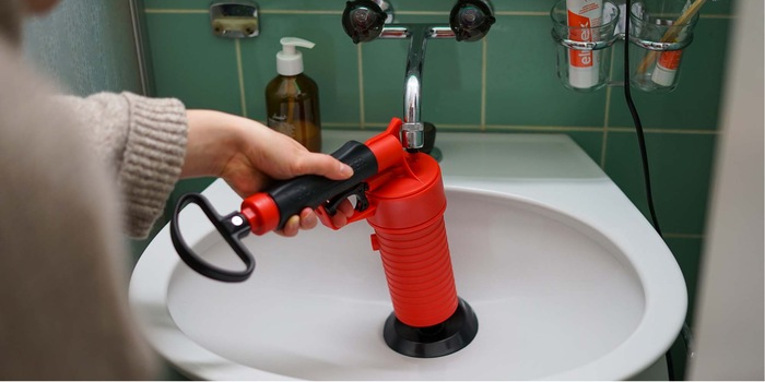 Die Bewertungen loben das seltsame rote, wie eine Bohrmaschine für Kinder, aussehende Teil in den Himmel. «Wenn alles entstopft ist, muss man leider wieder warten bis zum nächsten Mal...» schreibt User Deusmortuorum666. Da mir sowieso nicht mehr viel übrig bleibt, bestelle ich mir die sanitäre Luftdruckpistole.