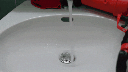 Dann den richtigen Aufsatz fürs Lavabo auf das rote Teil. Etwas Wasser soll ich noch ins Lavabo laufen lassen, meinte mein Vater. Das sei besser fürs Vakuum, das es braucht, um das Rohr freizupressen. Darauf folgt der letzte, für mich wichtigste Hinweis: «Pass uf, das cha s Wasser denn uesprütze.» Eine Horror-Vorstellung, Syphon-Wasser ins Gesicht zu kriegen. Dementsprechend rüste ich mich aus mit Gesichtsmaske und einer alten Schutzbrille.