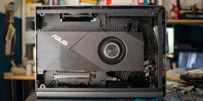 Eine Grafikkarte mit knapp drei Slots Dicke – wie die mir zur Verfügung stehende Asus Rog Strix GeForce RTX 2070 Super – in einem Mini-ITX-Gehäuse zu verbauen ist oft unmöglich. Häufig ist bei solchen Gehäusen bei zweieinhalb Slots Dicke fertig. So auch beim H1 von NZXT und Rocket von Kolink, die ich für Tests zur Verfügung habe. Deshalb wird bei Mini-ITX-Gehäusen meistens auf eine Grafikkarte mit Radiallüfter zurückgegriffen, die kleiner als Modelle mit Axiallüfter sind.