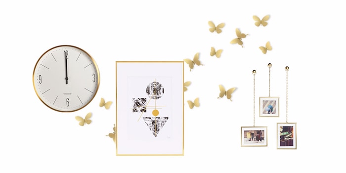 Gold wirkt chic, zu viel davon hingegen billig. Wanduhren und Bilderrahmen mit dezenten, goldenen Umrandungen wirken edel und unaufdringlich. Das kann man im Übrigen auch mit Silber oder Kupfer machen, wichtig ist, dass du die verschiedenen Metallfarben nicht mischst (Gold und Kupfer vertragen sich optisch nicht so gut).