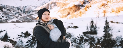 Im Bauch der Mama hat ein Baby immer eine wohlige Wärme. Darum fühlt es sich auch nach der Geburt besonders wohl, wenn es eng umschlungen und warm eingepackt wird. Bei Spaziergängen in der Kälte schaffst du auf zwei Arten genügend Wärme. Entweder du nimmst deinen Säugling mit einer Babytrage oder einem Tragetuch eng an deinen Körper und trägst deine Jacke darüber. Deine Körperwärme schützt dein Kind vor der eisigen Kälte. Oder du stattest den Kinderwagen mit entsprechenden Gadgets aus. Lammfell, Fusssack, Decken und Wetterschutz sorgen für die richtige Nestwärme.