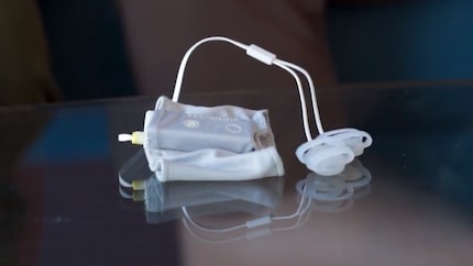 Neugierig nehme ich das nächste zu erratende Ding in die Hände. Ein kleines Kästchen verbindet zwei ungefähr ein Zentimeter grosse Silikonpads via Kabel, die je zwei Schlaufen auf einer Seite und auf der anderen eine Fläche mit einer leichten Erhebung drin haben.