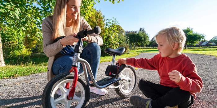 Kleine Kinder sitzen gerne auf ihrem Laufrad. Damit lernen sie das Gleichgewicht zu halten und bekommen ordentlich Tempo drauf. Das wiederum treibt Mama und Papa immer wieder den Angstschweiß auf die Stirn, weil das Bremsen meist noch nicht so gut klappt. Damit künftig keine brenzligen Situationen mehr entstehen, gibt es jetzt eine Lösung: die erste Fernbremse fürs Laufrad.
