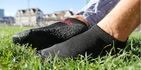Alle anzeigenDie Skinners Compression 2.0 sind keine Barfussschuhe im klassischen Sinne, sondern eine Mischung aus Schuhen und Socken – genauer gesagt, Socken mit einer robusten Sohle. Die früheren Modelle wurden von der Galaxus Redaktion bereits ausgiebig getestet. Neu ist, dass die Socken jetzt höher geschnitten sind und sie an Fussgelenk und Wade wie Sport-Kompressionssocken eng anliegen. Das soll mehr Halt und Balance beim Laufen sowie bei dynamischen Bewegungen wie Sprüngen und Hüpfern geben.