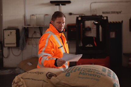 Der Kaffee des brasilianischen Bauern Rafael Vinhal hat es nach Wochen auf dem Schiff nach Basel geschafft. Ein ganzes Silo ist den bunten Säcken aus den Tropen vorbehalten, wo ein ehemaliger Fussballprofi über sie wacht.