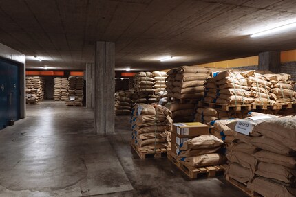 Er drückt auf den Lichtschalter und schon flackern reihum Leuchtstofflampen auf, die die Unmengen an säuberlich gestapelten Kaffeesäcken aus aller Welt sichtbar machen. Costa Rica, Brasilien, Äthiopien – die Assoziationen mit den Ländern und die bunten Aufdrucke auf den Säcken stehen im Kontrast zu dem grellen Licht und den kalten Betonwänden des Terminals. Und erst der Geruch. Es riecht mehr nach Bauschutt als nach Kaffee. «Der typische Duft kommt erst mit dem Rösten», sagt Vasile.