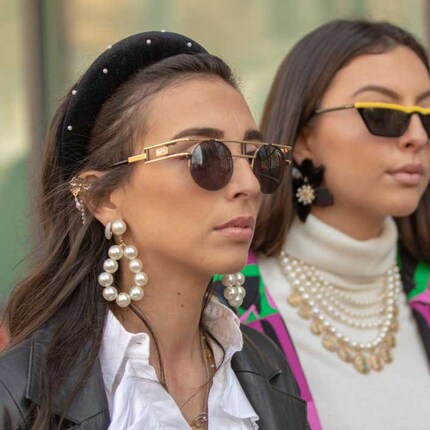 Aus besagtem Grund machte ich bis vor Kurzem eine Pause von meinen Perlmutt-Preziosen. Bis ich beim Sichten von Streetstyle-Bildern aus Mailand realisiert habe, dass der all time Schmuckfavorit richtig kombiniert alles andere als bünzlig aussieht: Künftig werde ich je eine lange Perlenkette um meine Knöchel binden und die Ohrringe meiner Oma mit einer lässigen Sonnenbrille in Szene setzen.