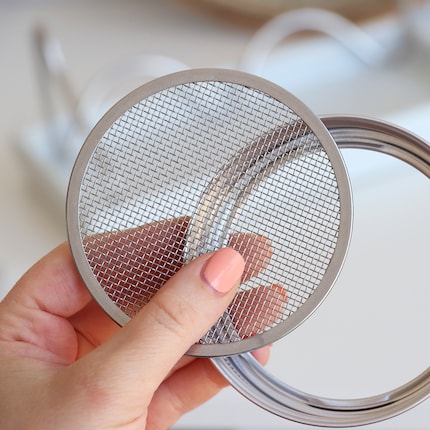Das Sprossenglas-System von Eschenfelder erledigt seinen Job und lässt sich gut reinigen, weil ich den Drehverschluss vom Sieb trennen kann. Was mich aber stört: Die Gläser halten ihre Position im Gestell nur dann, wenn ich beide darauf platziere. Nehme ich ein Glas heraus, um die Keimsaat darin mit Wasser durchzuspülen, kippt das andere Glas um. Daher mein Rat an dich: Lass das fancy Gestell und kauf dir lieber nur die Gläser. Die kannst du nämlich auch leicht gekippt in ein Tupper als Auffangbecken stellen. Das hält genauso gut und kommt dich günstiger. Für mich geht's mit der Randen-Keimsaat in eine neue Runde. Mal sehen, ob die auch so einfach zu handhaben sind wie die Alfaalfas.
