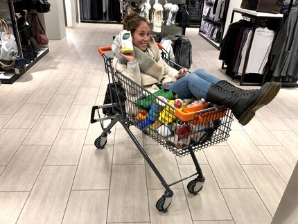 Einkaufen, wenn man selbst im Einkaufswagen sitzt, macht viel mehr Spass!Der erste Backversuch