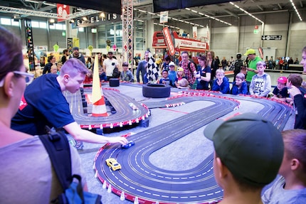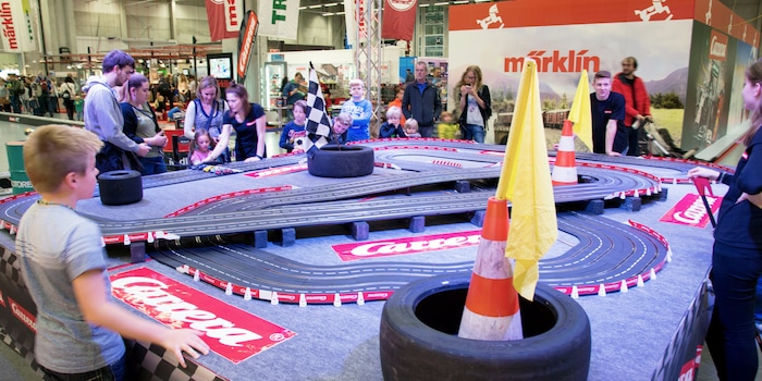 Wer kennt sie nicht. Die Rennstrecken von Carrera. An der Suisse Toy haben sie einen anspruchsvollen Kurs aufgebaut. Jeder Besuchende, ob gross oder klein, darf hier den Gashebel in die Hand nehmen und sich gegen die Anderen duellieren. Die von Carrera aufgebaute Rennstrecke hat Platz für fünf Rennfahrer gleichzeitig. Spass und Adrenalin garantiert.