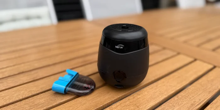 Die Wirksamkeit des E55 habe ich nicht im Labor getestet, sondern im Alltag. Konkret stand das Gerät auf dem Frühstückstisch, der wiederum auf einem offenen Sitzplatz zwischen Bäumen und Büschen stand. Nach einer Nacht mit Regen und bei 25 Grad am Morgen ist so etwas eigentlich ein Eldorado für Stechmücken. Das Thermacell-Gerät hat die Insekten aber erfolgreich ferngehalten.