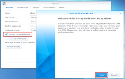Die passende App auf dem Handy herunterladen und öffnen. Im Setup für die 2-Stufen-Verifizierung generiert Synology einen QR-Code, der mit der App gescannt werden kann. Die App erstellt dann einen 6-stelligen Verifizierungscode, diesen Code im Synology Setup eingeben, zur Bestätigung.