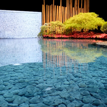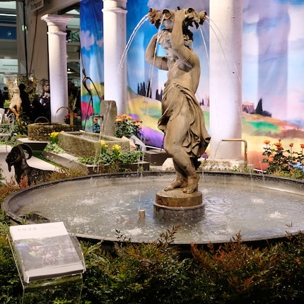 Im Gartenbau geht dieses Jahr nichts über Wasser. Schlichte Steinbrunnen, Fontänen mit Engelsstatuen, aber auch Pools und Whirlpools füllten die acht Hallen. Ein japanisch inspirierter Schaugarten macht einen Teich gar zum Blickfang. 30 Kois tummeln sich darin und sollen die Besucher zum Verweilen verführen.