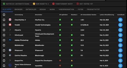 Ich kann nur bestätigen, was andere zuvor berichtet haben: Rosetta 2 funktioniert ausgezeichnet. Ich merke im Alltag gar nicht, für welche Architektur eine Anwendung entwickelt wurde. Die Software sieht gleich aus, fühlt sich gleich an und die Performance ist hervorragend. Auch habe ich keine Bugs festgestellt, die auf Rosetta 2 zurückzuführen wären.