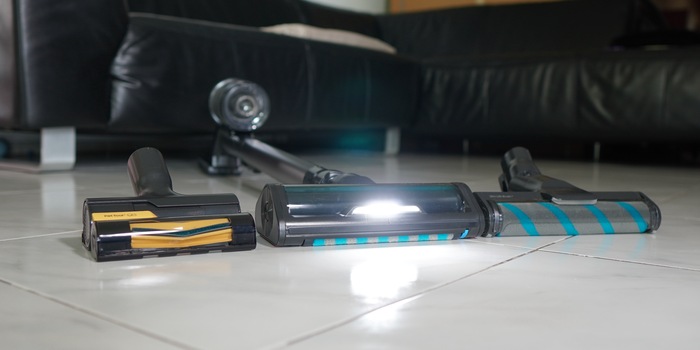 Samsung setzt nun endlich auch auf eine Beleuchtung des Bodens und spendiert ja gleich zwei Bürsten mit LEDs. Diese sind aber zu hoch platziert. Die Folge: Es wird zwar der Boden beleuchtet, du siehst den Staub aber deutlich schlechter als bei der Konkurrenz. Hier hat der Hersteller noch nicht die ideale Konstruktion gefunden.
