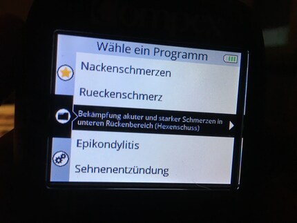 Eine der vielen Anwendungen des Compex SP 8.0 WOD Edition nennt sich «Lumbago», was nichts anderes als Hexenschuss bedeutet. Das muss ich natürlich ebenfalls gleich ausprobieren.