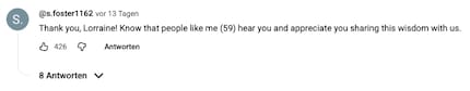 Die Kommentare unter den Videos zeigen, dass die Leute den gut versteckten Hinweis nicht mitbekommen haben: Sie sprechen die inexistente Person direkt an, bedanken sich bei ihr, wünschen ihr alles Gute.