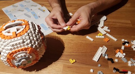Nach rund drei Stunden Zusammenbau waren wir erschöpft, aber glücklich. Der kleine Droide ist eine gelungene Sache geworden. Das Drehen des Kopfes ist genial gelöst und wir mussten beim ersten Mal laut lachen, als sich der Kopf nicht nur drehte, sondern richtig rumwackelte. Zusätzlich kann der Kleine einen Schweissbrenner ausfahren. BB-8 ist ein weiteres gelungenes Modell in der Star-Wars-Serie von Lego und wirklich ein schönes Ausstellungsstück. Ich werde mir sicherlich noch das eine oder andere Raumschiff von Lego zulegen, um meine Star-Wars-Sammlung zu erweitern. Vielen lieben Dank, Galaxus.