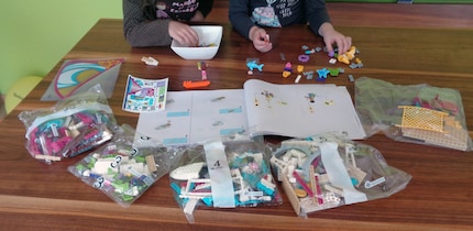 Wir freuten uns riesig, als der Pöstler uns ein Päckli von Galaxus gebracht hat und die Mädels es auspacken durften. Sie sind regelrecht ausgeflippt. Zuerst dachten wir, sie hätten schon die ganze Energie fürs Auspacken verbraucht. Aber mit dem Ziel vor Augen, sprich dem schönen Bild auf der Schachtel, hatten sie grossen Ansporn. Auch die kleinere hat richtig gut mitgemacht beim Zusammenbau. Mein Mann hat mit den beiden das Anleitungsheft Seite für Seite durchgeackert. Die kleinere konnte die Legosteine suchen und die ältere diese dann wie abgebildet zusammenbauen.