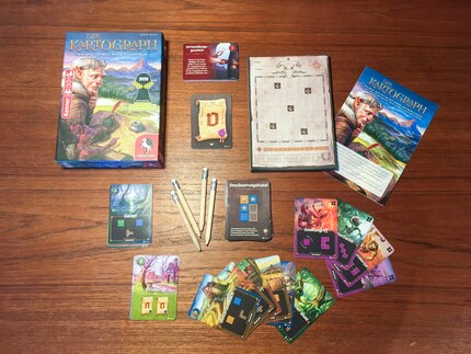 Als Kartograph im Auftrag der Königin Gimnax schlägst du dich durch einen nur wenig erkundeten Teil ihres Reiches und sollst diesen gründlich vermessen. Beim Erfassen der unterschiedlichen Ländereien lieferst du dir auch noch einen Wettlauf mit dem dem feindlichen Volk der Dragul. Die Hintergrundgeschichte mit dem fantasievollen Mittelalter-Rollenspielen-Setting findet ihre Entsprechung in den liebevoll gestalteten Spielkarten mit farbenfrohen Landschaftsmalereien, wie sie auch im «Herr der Ringe» zu finden sein könnten. Der Rahmen ist stimmig, doch letztlich überzeugt vor allem die schlaue Spielidee. Mit zunehmender Übung werden die Strategien ausgefeilter, die Taktik gewiefter – und die Spielfreude umso größer. «Der Kartograph» wird einem nicht so schnell langweilig.