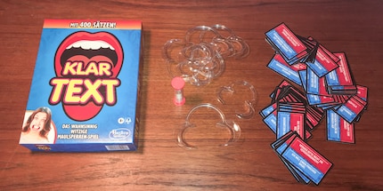 Wer bei solchen Dialogen noch nicht vor Lachen unterm dem Tisch liegt, wird es spätestens bei den unglaublichen Grimassen, die sämtliche Spieler beim Erklären ziehen. Natürlich sieht man mit durchsichtigem Mundstück reichlich dämlich aus, erst recht wenn man sich halbwegs ernsthaft bemüht, Sätze zu artikulieren. Die Fähigkeit, über sich selbst lachen zu können, solltest du bei «Klartext» unbedingt mitbringen. Eine niedrige Hemmschwelle kann auch nicht schaden. Und schon hast du einen irre witzigen bis irrwitzigen Riesenspaß, der sich nun wirklich mit allen und jedem jederzeit spielen lässt, vor allem auch mit Kindern aller Altersstufen. Je größer die Gruppe, desto größer das Gelächter. «Klartext» eignet sich auch hervorragend als Partyspiel! Vorher aber unbedingt klären, dass Fotos oder Videos nur nach Absprache in sozialen Netzwerken veröffentlicht werden! Und sollte die Oma mitmischen: Vorher eine Extraportion Haftcreme für die dritten Zähne verwenden. Sonst: Verlustgefahr!