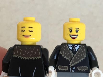 Wie immer bei Lego werden erst die Figuren zusammengebaut. In diesem Beutel sind es zwei verschiedene Figuren. Die Frauenfigur hat sogar zwei verschiedene Gesichter.