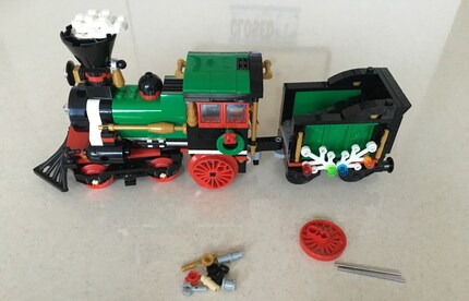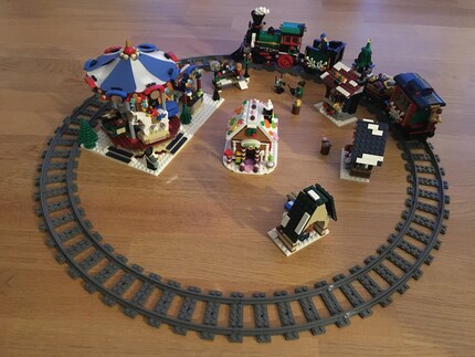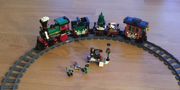 Es ist vollbracht. Nach zwei Stunden Lego-Spass steht vor mir der neue festliche Weihnachtszug von Lego Creator. Die beigefügten Schienen reichen für einen Kreis von ca. einem Meter Durchmesser. Genug, um einmal um den kleinen Weihnachtsbaum zu kreisen.