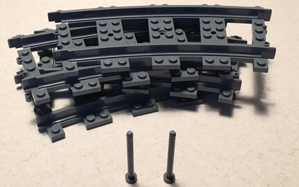 Hier kommen auch zum ersten Mal in meiner Lego-Geschichte, soweit ich mich erinnern kann, Metall vor. Die Räder von dem Anhänger haben Achsen, welche aus einem kleinen Metallstab bestehen. Zwei Räder auf die Achse stecken und das Ganze in die Halterung am Waggon klicken – fertig.