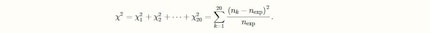 In dieser Gleichung berechne ich die Differenz zwischen der tatsächlichen und der erwarteten Anzahl von Würfen, multipliziere sie mit sich selbst und teile sie durch die erwartete Anzahl. Das mache ich mit jeder der sechs Seiten des Würfels und addiere die Werte.