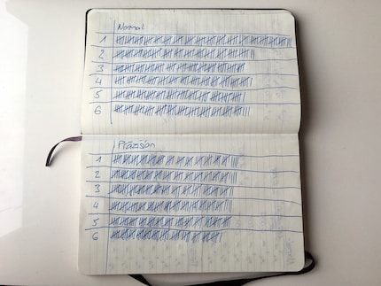 Damit ich auf einen aussagekräftigen Wert komme, reicht zehnmal würfeln nicht aus. Daher werfe ich beide Würfel je 400 Mal und notiere mir dabei die gewürfelten Zahlen in mein Notizbuch. Folgende Werte kamen dabei heraus: