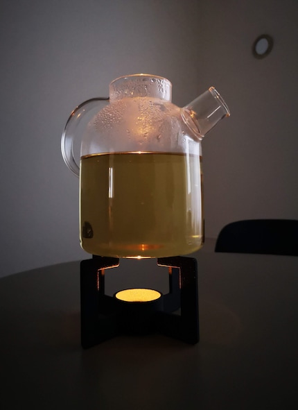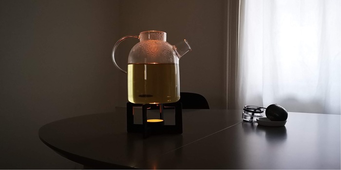 Das Geräusch vom kochenden Wasser meines Teekochers ist mittlerweile wie ein Intro zum Schlafengehen. Manchmal habe ich zwar keine Lust auf Tee, aber in der Regelmässigkeit liegt die Kraft. Der Pluspunkt meiner Lieblingskanne von Menu und ihrem Stövchen ist, dass ich meinen Tee damit warm halten und am nächsten Tag wieder aufwärmen kann, wenn ich nicht alles trinke. An ihr mag ich auch, dass sie ein passendes Sieb für lose Teesorten besitzt. Im Unterschied zu einem fixfertigen Beutel verlangsamt sich so der Prozess des Aufkochen und unterstützt so meine Zeremonie.