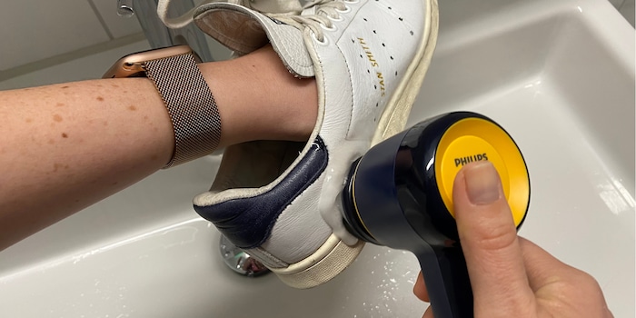 Alle anzeigenHalb Rasierer, halb Gesichtsreinigungsbürste – ich muss schmunzeln, als ich die Verpackung des Sneaker Cleaner von Philips in den Händen halte. Er erinnert mich eher an ein Grooming-Produkt als an einen Schuhreiniger. Ich bin skeptisch, da ich generell kein Fan von elektrischen Bürsten bin – schon gar nicht von solchen fürs Gesicht. Und genau daran erinnert mich die Produktneuheit. Inwiefern soll mir etwas Elektrisches eine Arbeit erleichtern, die ich mühelos manuell erledigen kann?