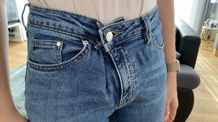 Ich gebe zu, dass dieser Fashion Hack gewöhnungsbedürftig aussieht. Vor allem, wenn du dazu ein bauchfreies Top kombinierst – in diesem Fall empfehle ich dir einen Gürtel. Wenn das Oberteil allerdings den Hosenladen bedeckt, ertappt dich niemand beim Schummeln. ;-)