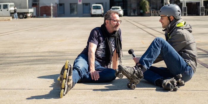 Alle anzeigen«Die sind aber geil», sagt Jürg Hauser, als er meine zerfledderten Rollschuhe aus den 90ern sieht. Seine Skates haben auch schon eine gute Patina und bestimmt 15 Jahre auf dem Buckel. Das passt, denn es geht um einen Rückblick. Jürg ist der Mann, der vor bald 20 Jahren mit dem «Monday Night Skate» eine Bewegung ins Rollen gebracht hat, die auch in unserem TV-Spot auftaucht. Heute, mit 49, kommt er aus einer Art Skate-Sabbatical. Seit 2017 ist er nicht mehr der Organisator des Events, in den vergangenen Monaten standen andere Dinge im Vordergrund und die Skates in der Ecke. Wir drehen gemeinsam ein paar Runden auf dem Zürcher Turbinenplatz, während mein Kollege Alessandro Thüler Fotos schiesst. Jürgs Bewegungen werden schnell geschmeidiger, das Lächeln breiter, die Sonne strahlt auch. Perfekte Bedingungen, um in Erinnerungen zu schwelgen.