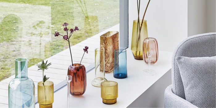 Dein Arrangement lebt vom Stil der einzelnen Gefässe. Setze auf Vasen aus derselben Farbfamilie für ein harmonisches Bild. Oder wähle unterschiedliche Farbtöne, aber ein und dasselbe Material, das verbindet.