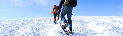 Die Preis- und Qualitätsunterschiede der Schneeschuhe sind vor allem auf die unterschiedlichen Materialien - meist Aluminium oder Kunststoff - sowie auf die Art und Verarbeitung der Bindung zurückzuführen. Besonders für längere Winterwanderungen ist ein Aluminium-Schneeschuh empfehlenswerter, da dieser leichter ist und dir etwas mehr Halt und Auftrieb gibt. Für festere Schuhe eignet sich die Ratschen-, für weiche Schuhe die Riemenbindung am besten.