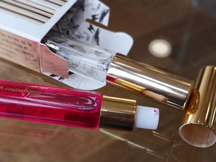 Im Set enthalten ist ein durchsichtiger Gloss, der kühlen soll und ein pinker, dem vom Hersteller ein wärmender Effekt nachgesagt wird: