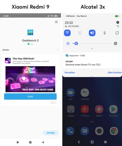 Das würde ich ja so noch hinnehmen. Was mich dagegen massiv stört, sind die Werbeeinblendungen. Beim Alcatel 3x erscheinen sie in Form von Pop-Up-Benachrichtigungen der hauseigenen «enjoy.now»-App. Xiaomi blendet sie nach der Installation von Apps ein und führt dafür extra eine weitere Überprüfung der Installationsdateien aus dem Play Store durch. Darauf kann ich gut verzichten.