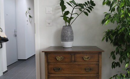 Die Kommode ist ein Erbstück der Grosstante und ist eine gute Ergänzung in der modernen Wohnung.Der Barwagen ist ein altes Erbstück von meiner Grossmutter.Der Esstisch mit meinen Namen. Alexandra.Als weiteres Projekt habe ich mit Unterstützung vom Produktmanager für Gartenmöbel, David Widmer, meine Terrasse neu eingerichtet.