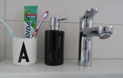 Die Kaffeetasse von der Marke Design Letters wird als Zahnbürstenglas entfremdet.Ich trinke wenig Kaffee, aber wenn, dann einen Latte Macchiato mit viel Milch.Aktuell in meinem Warenkorb: