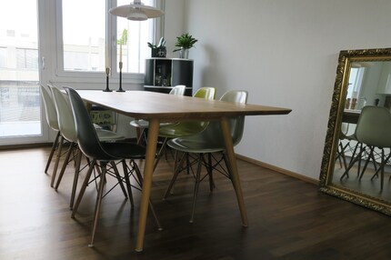 Ich merkte schnell, dass man in Zürich gut und gerne Kompromisse eingehen muss, um sein Budget zu halten. Meine jetzige Wohnung ist also nicht perfekt, aber dafür mit umso mehr Liebe ins Detail eingerichtet: Eine renovierte Wohnung im Dachgeschoss, sehr viel Licht, offener Grundriss und zwei grosse Terrassen.