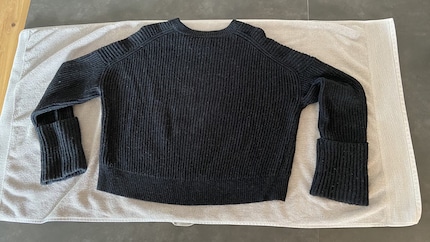 Der Wäschetrockner ist hingegen tabu, da Strick eingeht. Lege deine Kuschelteile stattdessen zum Trocknen flach auf ein Frotteetuch. Wenn du sie aufhängst, leiern sie aus.