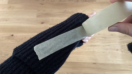 Wenn du unterwegs bist und Fussel auf deinem Pullover entdeckst, darfst du sie auf keinen Fall von Hand ausrupfen. Dadurch lockert sich das Gewebe und es lösen sich weitere Fasern. Die Folge ist noch mehr Pilling. Abhilfe schafft eine starke Fusselrolle. Ich bunkere eine in meiner Büroschublade. Alternativ tut es auch ein Klebeband, das du auf die Fusseln drückst und ruckartig, aber dennoch vorsichtig, abziehst. Diese Methode ist nicht die schonendste, aber praktisch, wenn es schnell gehen muss.