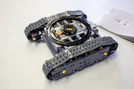 Auch die Dimensionen der LEGO-Version sind enorm. Mach dich bereit, 4 108 Einzelteile in die Hand zu nehmen und zu einer kolossalen Maschine zusammenzubauen. Damit der Bagger auch alle Funktionen vom Original beherrscht, kommen sieben Motoren und zwei Steuereinheiten zum Einsatz, welche du über eine App auf deinem Smartphone steuern kannst. Die Bauanleitung ist wie so oft bei grossen LEGO-Modellen in zwei Bücher aufgeteilt. Insgesamt warten über 700 Seiten und 1 000 Bauschritten auf dich. Angefangen wird mit dem Fahrwerk.