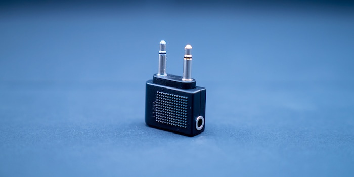 Die Alternative (Life Hack) … den 3.5mm Stecker zuerst in einen der zwei Plugs ganz einstecken und dann ein wenig rausziehen, aber ist mit den Vibrationen im Flugzeug eher etwas nervig, daher macht der Adapter mehr Sinn.