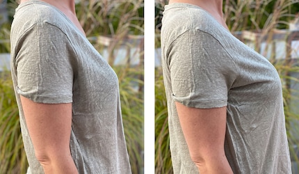 Laura: Das funktioniert so halb. Die Pumpe an sich kann ich easy verstecken. Unsichtbar finde ich sie aber nicht. Sie trägt logischerweise sehr auf. Ich habe locker zwei Körbchengrössen mehr. Das fällt schon auf. Mit einer Jacke über dem Top habe ich mich getraut, den Müll rauszubringen. Irritierten Blicke gabe es keine, mein Freund hat aber gleich gesagt, dass ich riesige Brüste habe.